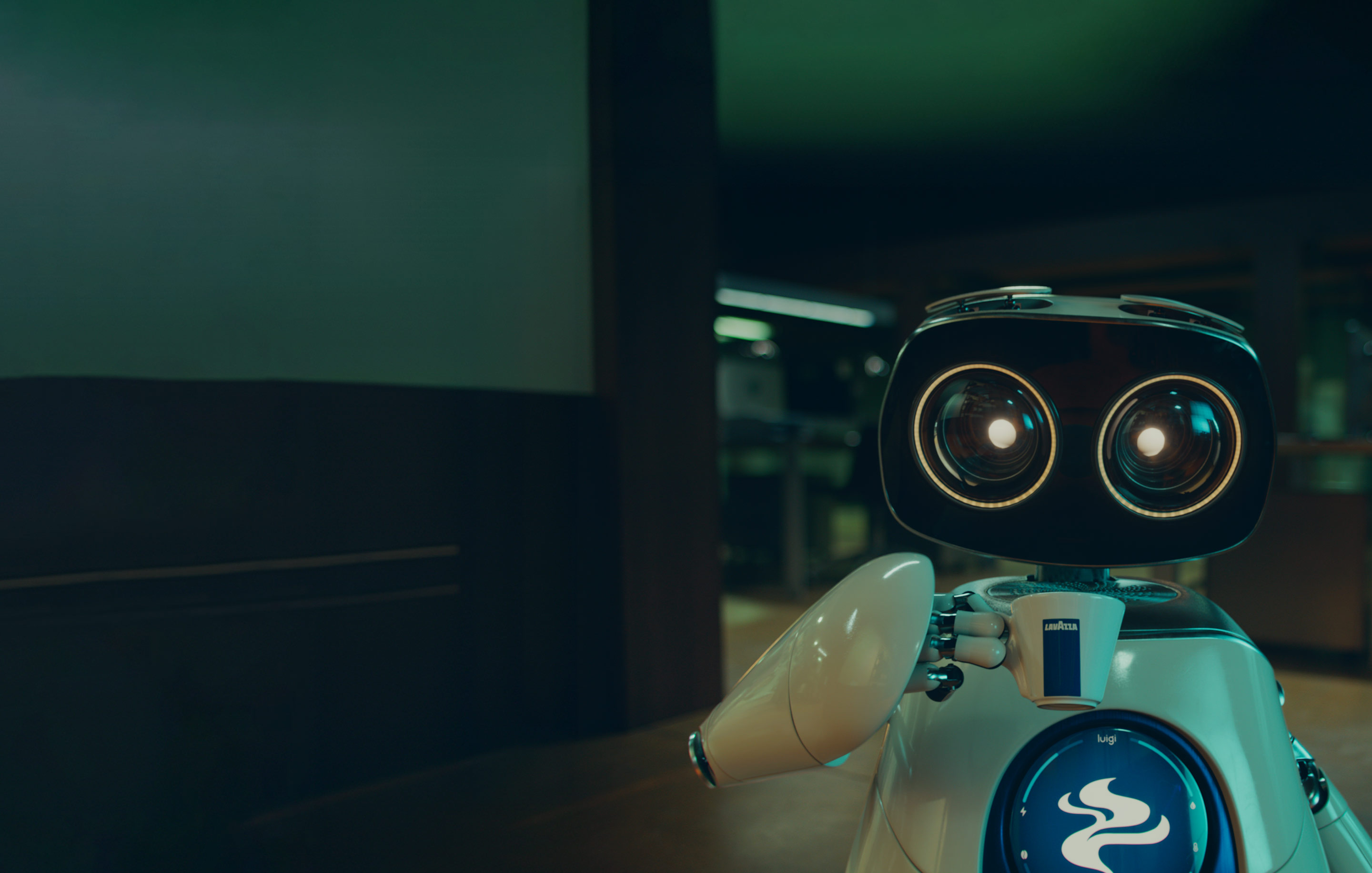Luigi je roztomilý kancelářský robot na přípravu kávy, který je každý den svědkem radosti ze života ve stylu Dolce Vita, přístupu a chuti, jež inspiruje celý svět. Prostřednictvím kávy Lavazza přináší potěšení svým lidským kolegům, kteří ji také touží ji ochutnat. Věříme, že šálek kávy je mnohem víc než jen nápoj: je to okamžik k načerpání nových sil, který sdílíme s blízkými. Je to synonymum pro potěšení. Luigiho největším snem je také ochutnat naši kávu a zažít stejné potěšení, ale nemůže. Proto hraje po boku komiků a hollywoodských hvězd, XX a XX. Společně si s Luigim na pódiu užívají lahodnou přestávku na kávu Lavazza, což našemu příběhu dodává nádech humoru a vřelosti!